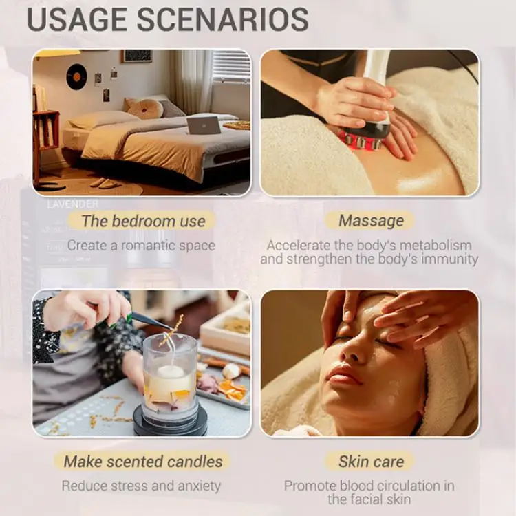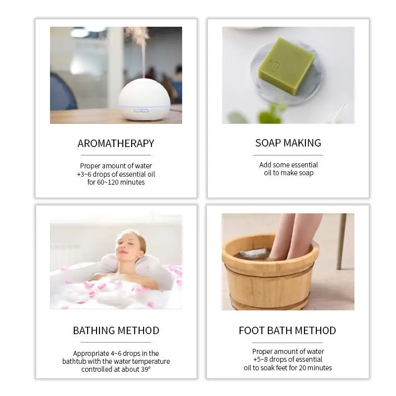 Fragrances: Rose, Lavender, Cherry Blossom, Jasmine, Sandalwood, Cologne, Marine, Eucalyptus, Mint, Rosemary, Orange, Coffee, Green Tea, Lemon, Vanilla, Lemongrass, Violet, Freesia, White Tea, Osmanthus, Chamomile, Gardenia, Bergamot, Grape, Lychee, Cedarwood, Ylang-Ylang, White Peach, Lily